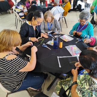 No encerramento, a exposição dos bordados foi uma verdadeira galeria de arte! Peças que traduziam esforço e dedicação encheram os olhos de todos. Para inspirar ainda mais, tivemos a presença de Rozane Frazoli, que compartilhou sua história e incentivou as participantes a enxergarem o artesanato como uma oportunidade real de crescimento e independência financeira. Para fechar a noite com alegria, sorteamos peças artesanais que levaram um pedacinho desse momento para cada casa.